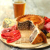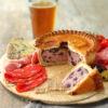 Pork, Chicken and Stuffing pie – contains 40% meat (30% pork, 10% chicken), wheat flour (wheat gluten) (contains calcium, iron, niacin, thiamine) lard, water, salt: breadcrumb (wheat), rusk (wheat), dextrose, starch (potato), flavour enhancer (E621), stabilisers (diphosphates E450), flavouring, antioxidants (E301 ascorbic acid), preservatives (E250, E251), natural flavouring (celery), pepper, nutmeg: yeast, onion, rapeseed oil, flavouring, parsley, sage; beef gelatine, salt, gelling agents (E407), flavour enhancer (E621), dextrose, stabiliser (E508), dried glucose syrup, flavourings spice extracts, humectant (E1520); dextrin, stabiliser (E412), colour (E160a) For allergy information see above in bold. All care has been taken to remove all bones, however it is possible that some small bones may remain.